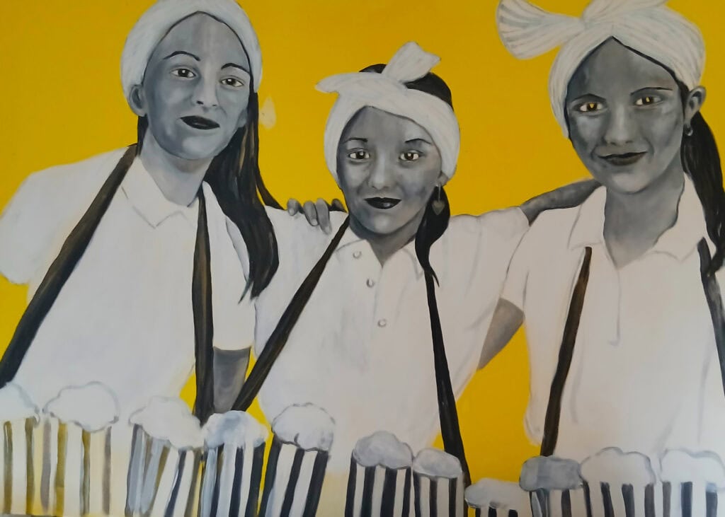 Sheila Kelleher, BA Fine Art, is a Clonakilty based artist from the Gaeltacht of Béal Átha an Ghaorthaidh. A figurative artist, this particular body of work reflects her many years as artistic director of street theatre with Féile na Bealtaine in Dingle. Sheila’s work portrays glimpses of people in costume, moments before they head out to perform their colourful street spectacle.