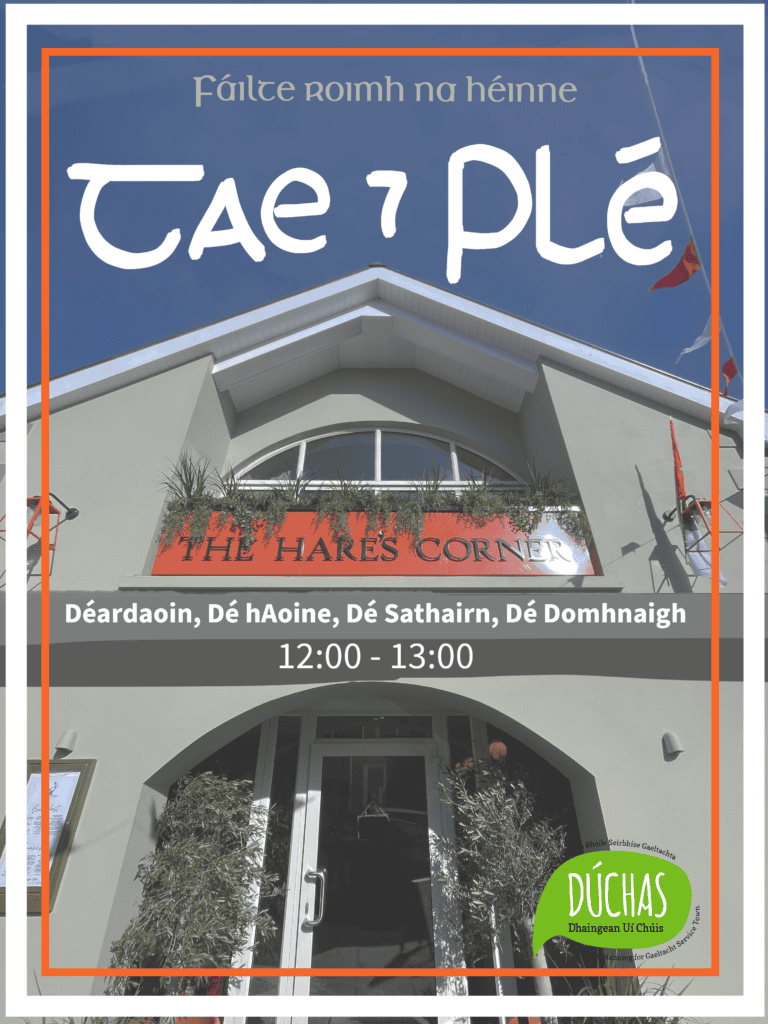 Call in to The Hare’s Corner and join us for tea/coffee and a chat. A great opportunity to practice your Gaelainn. Tá fáilte roimh gach leibhéal Gaelainne.